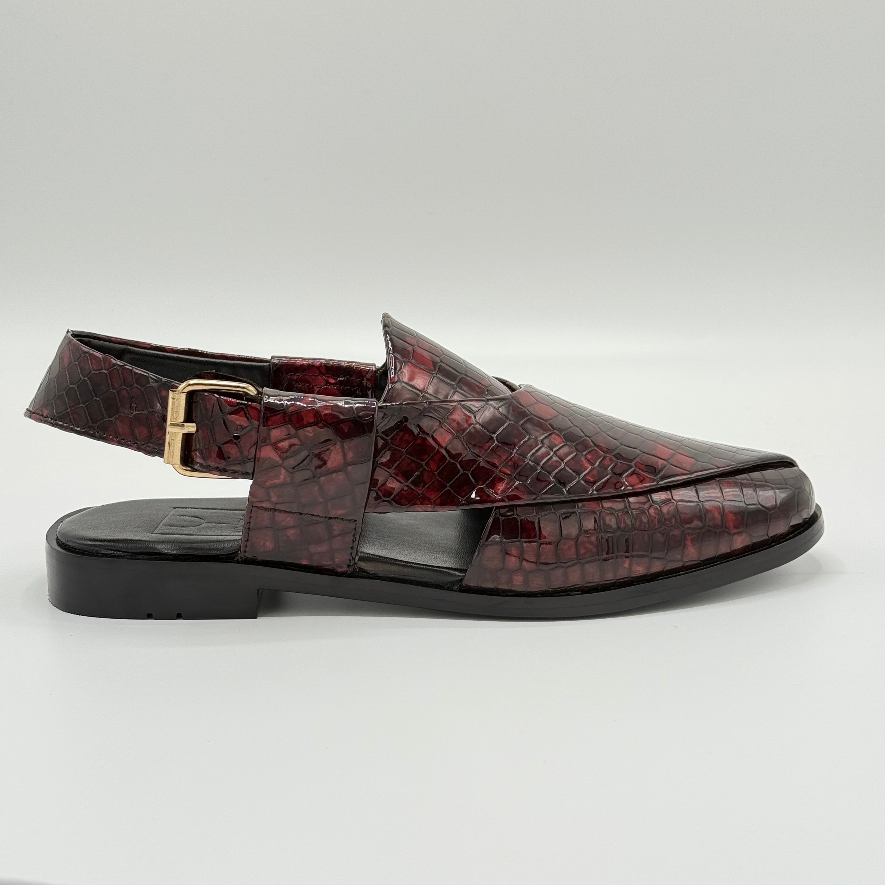 Reddo shoes feature a unique printed patent leather that mimics the texture of snake skin, offering a sophisticated and premium appearance. This material not only enhances the aesthetic appeal but also provides a soft and comfortable fit, making Reddo both practical for everyday wear and stylish for any occasion.