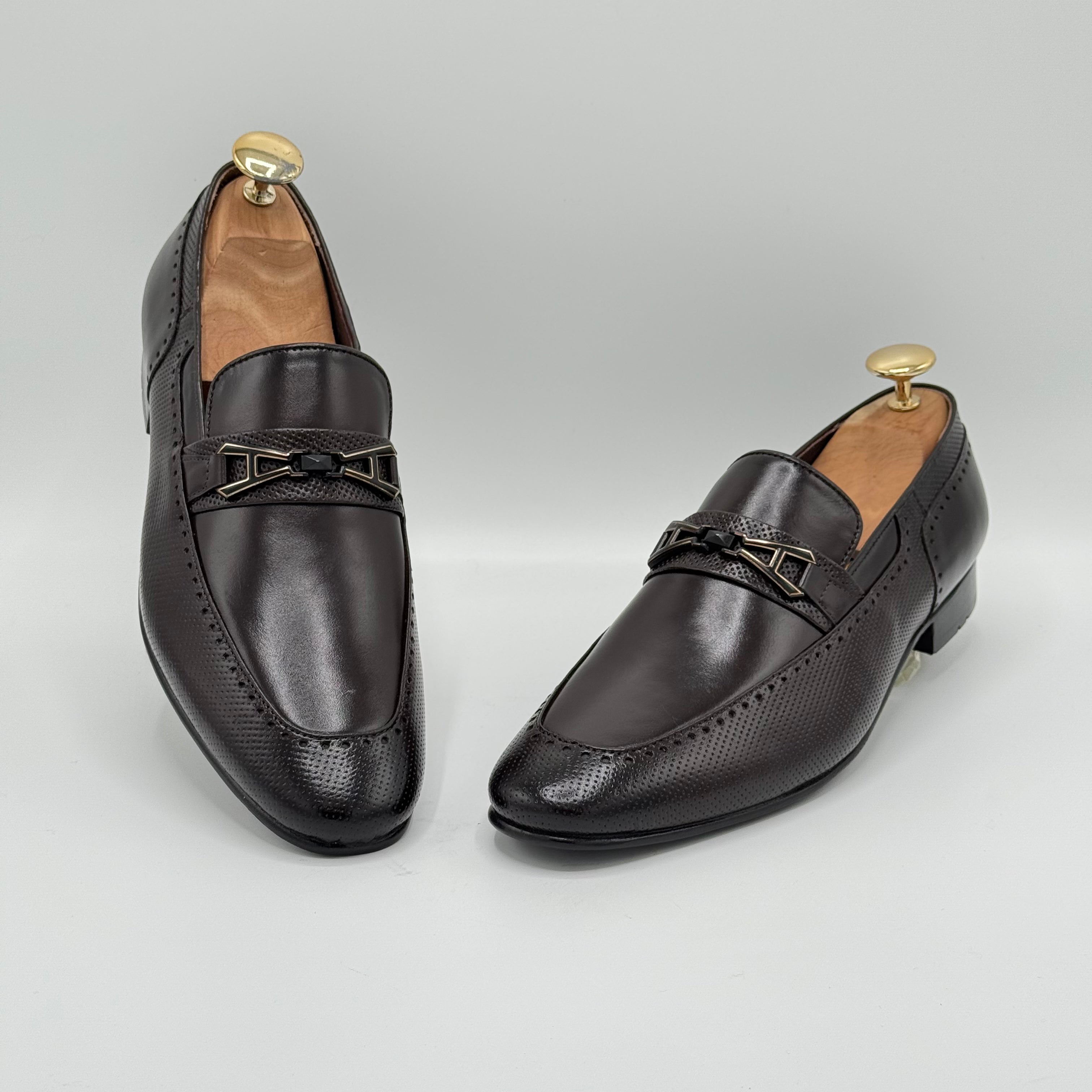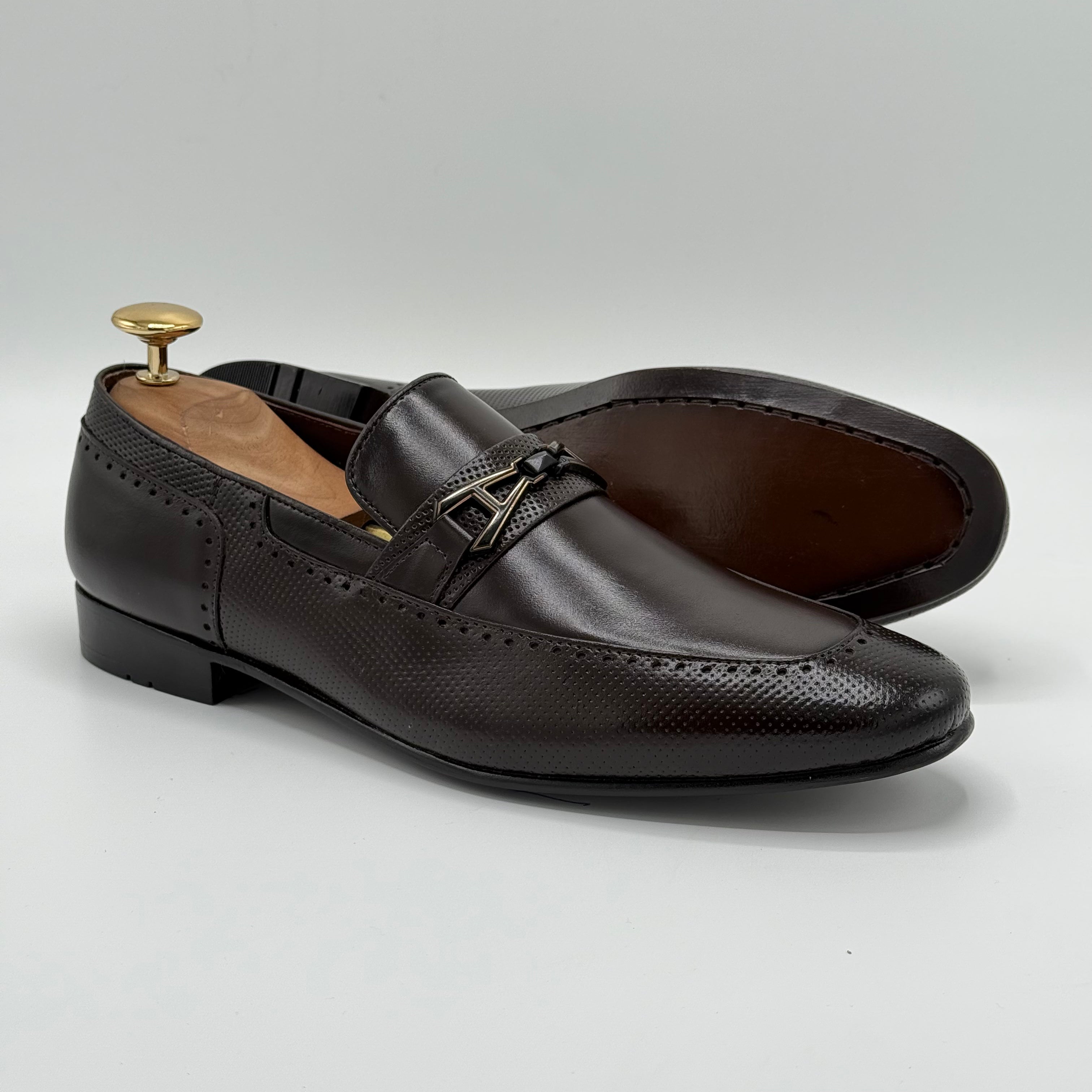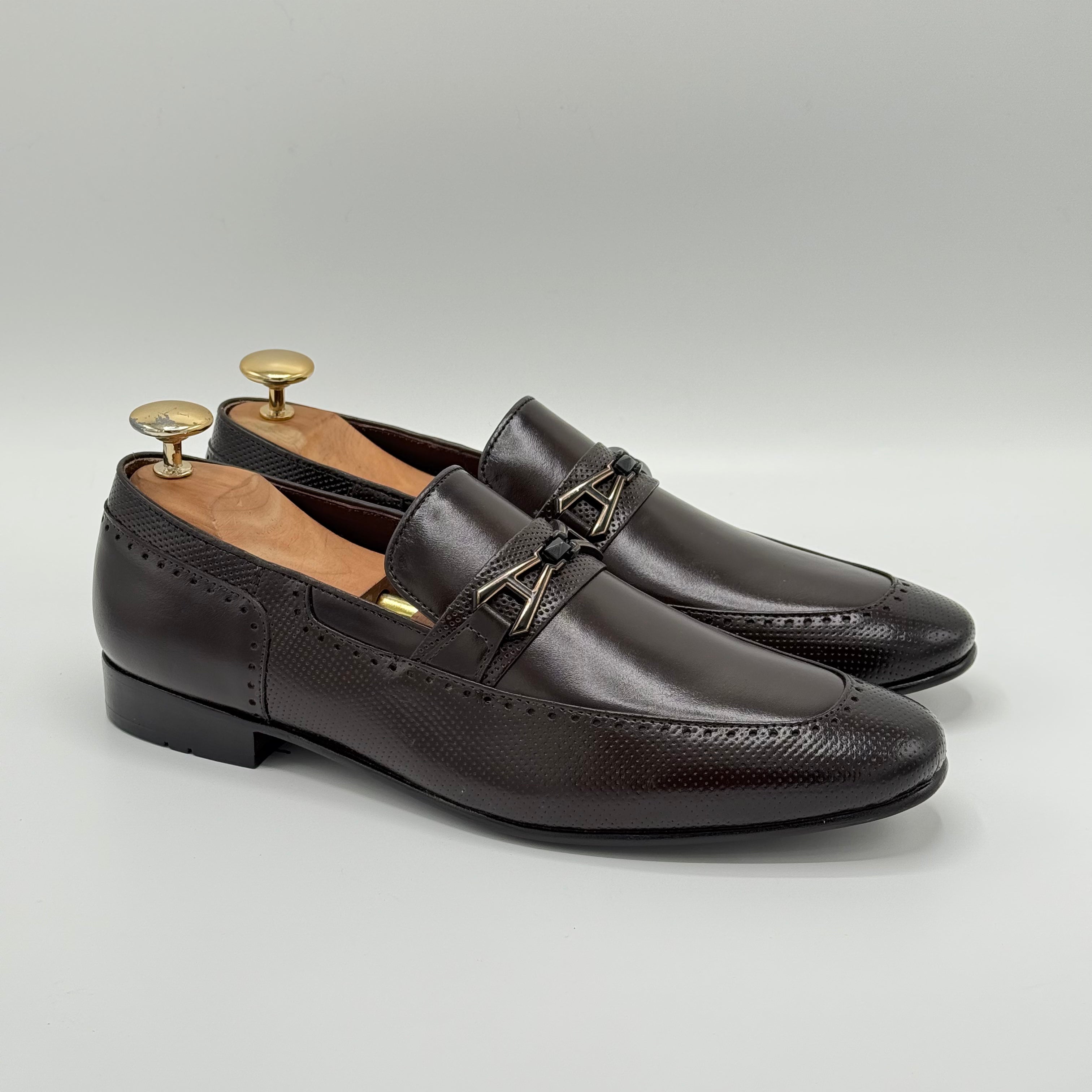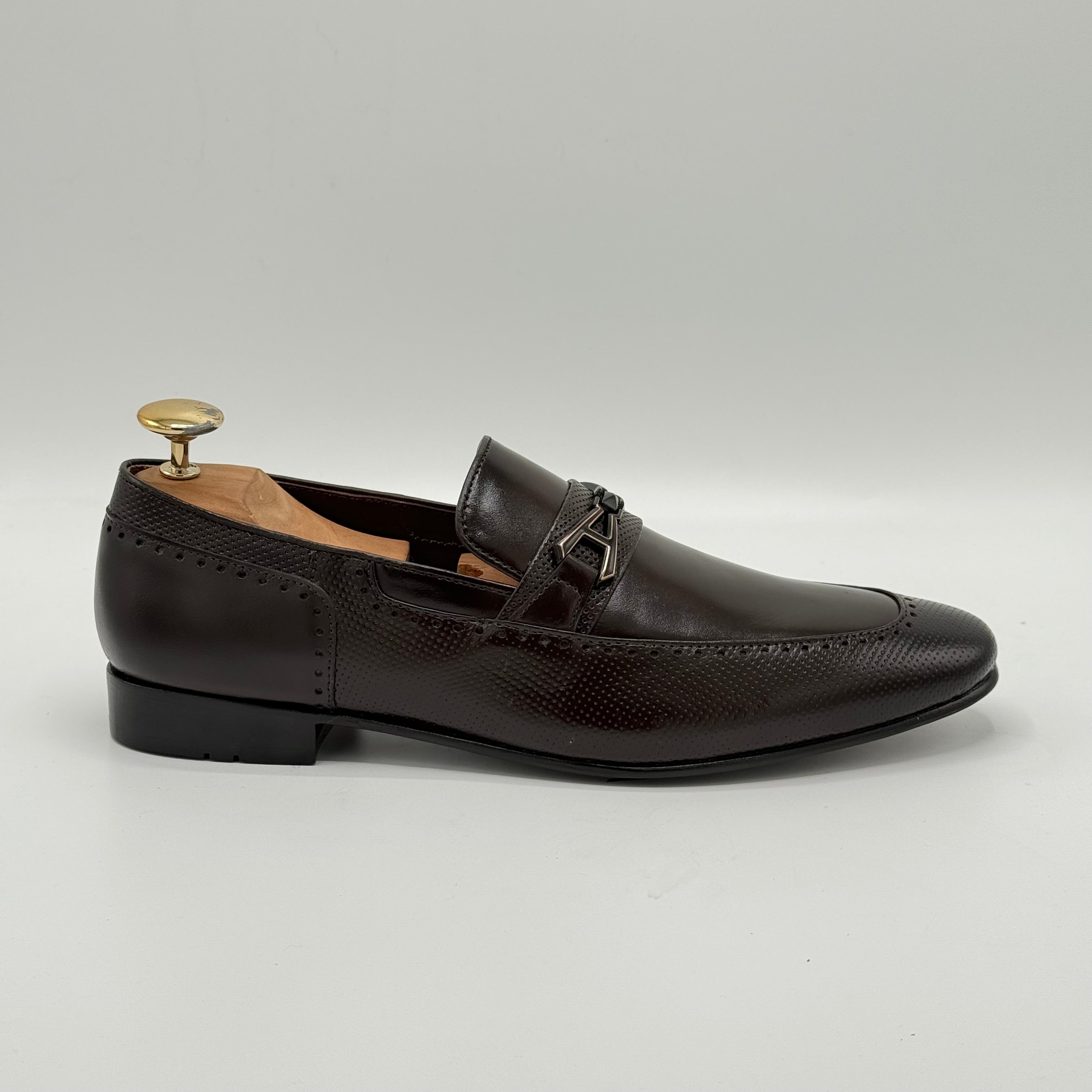 Crafted from pure leather, the XEON features beautifully embossed texture that enhance its sophisticated look. Each perforation is meticulously hand-punched by skilled artisans, ensuring exceptional quality and attention to detail. The premium leather lining adds comfort and durability, making XEON a refined choice for those who appreciate expert craftsmanship.