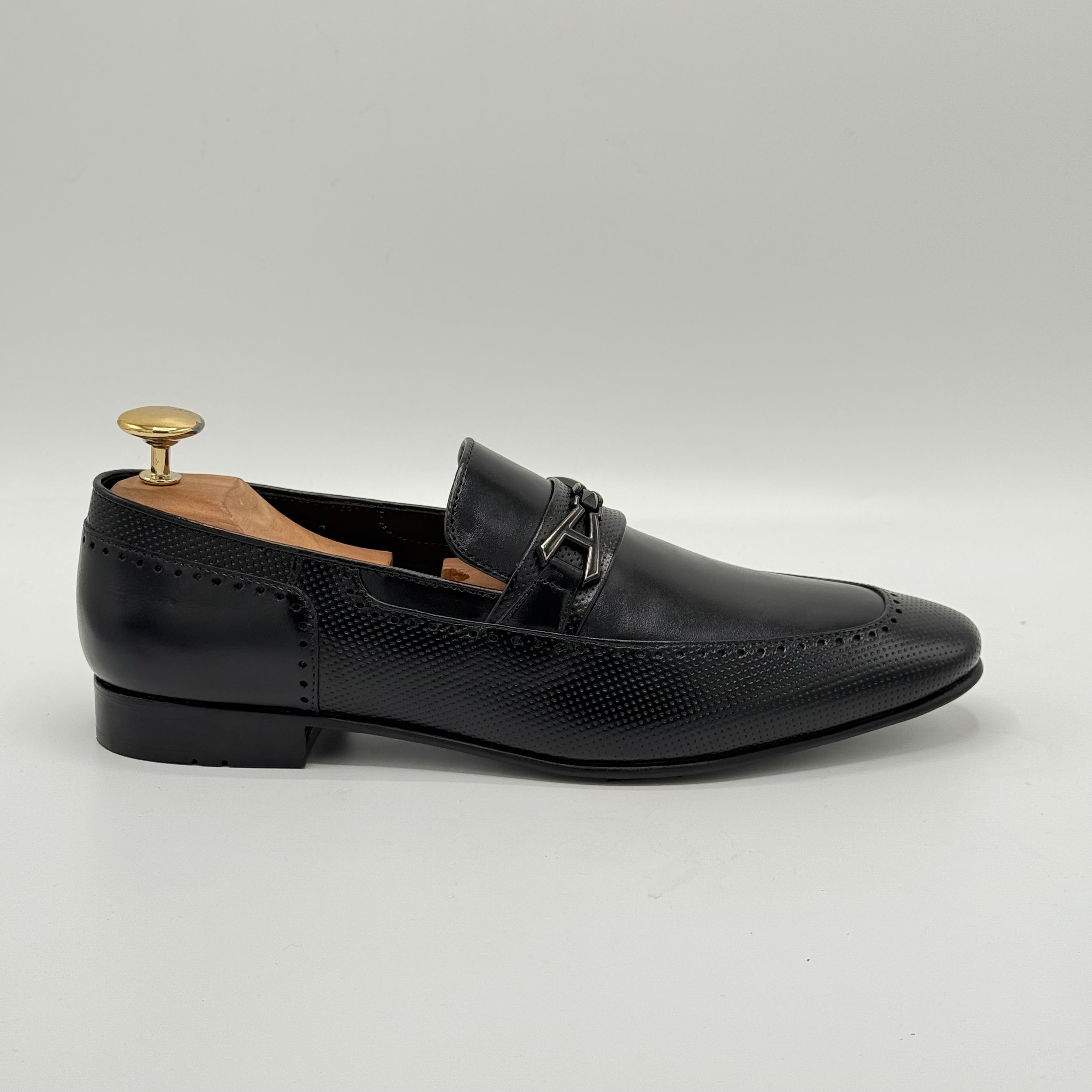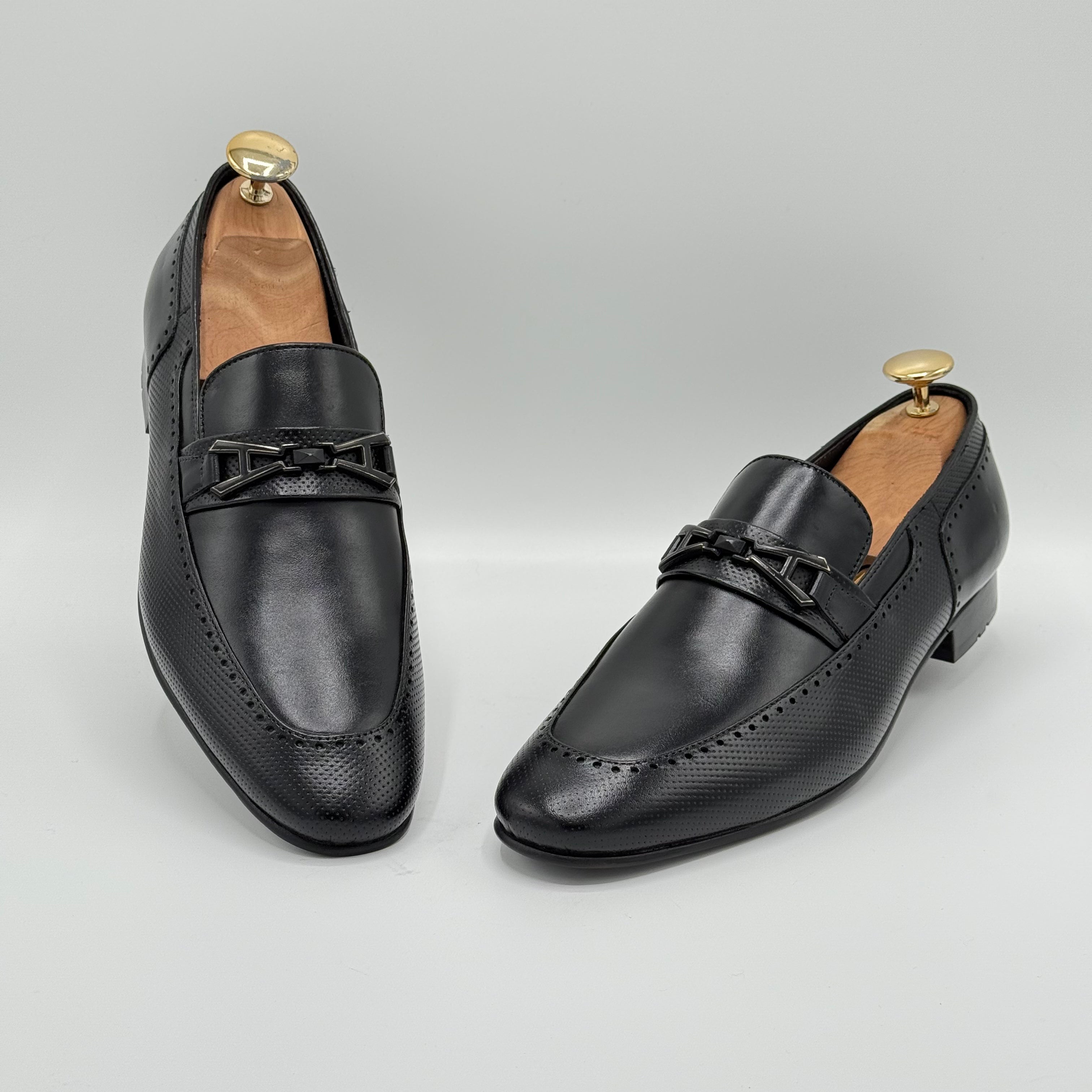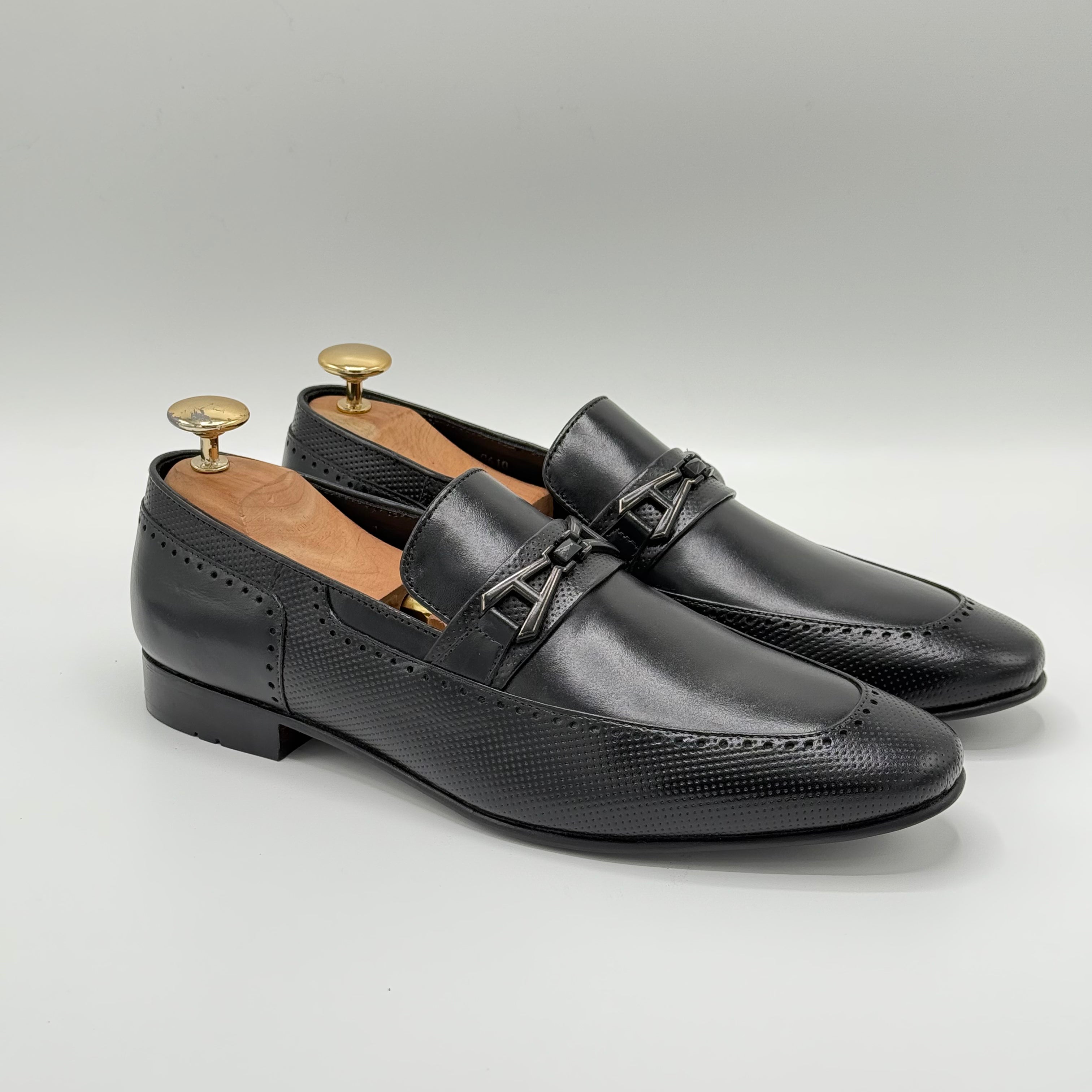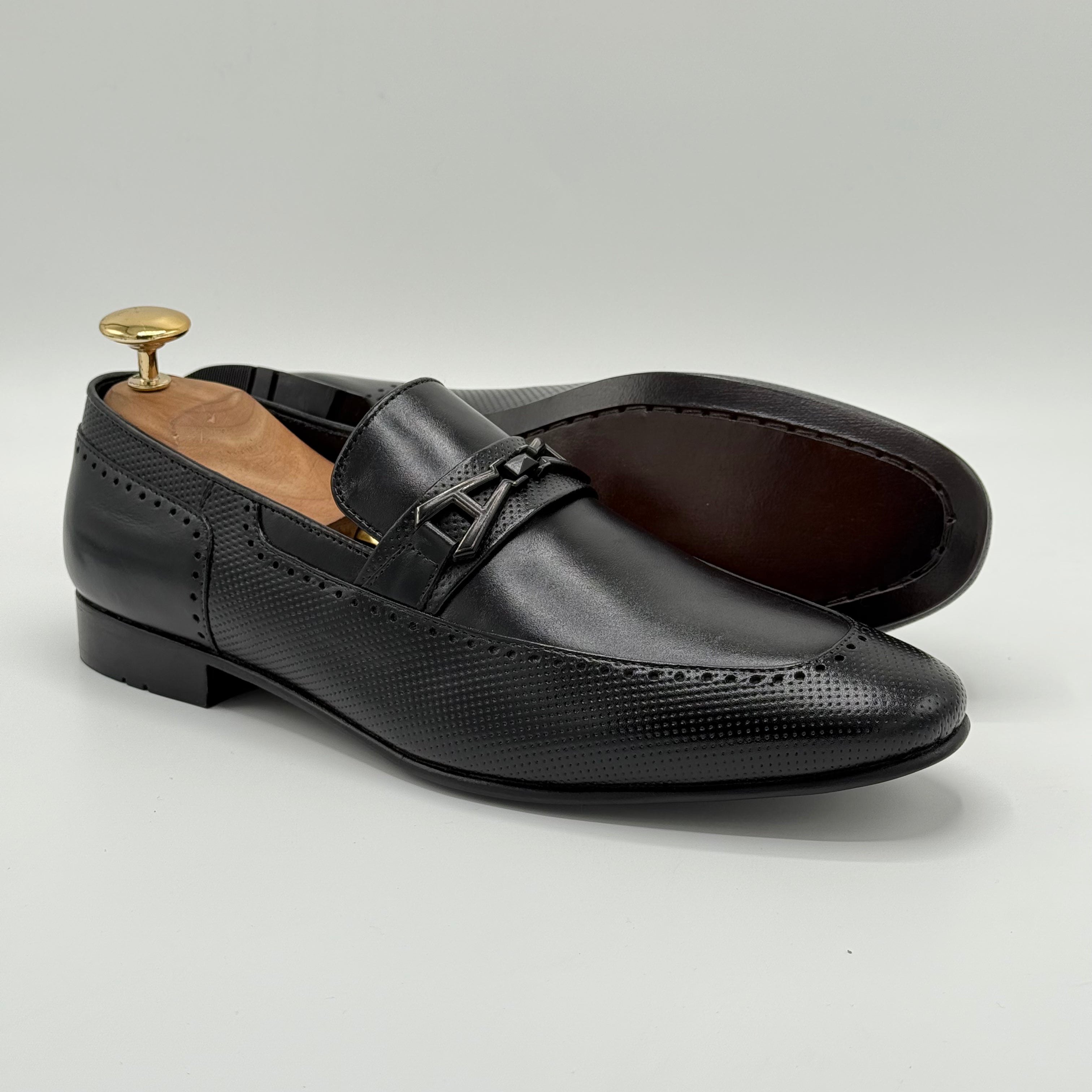Crafted from pure leather, the XEON features beautifully embossed texture that enhance its sophisticated look. Each perforation is meticulously hand-punched by skilled artisans, ensuring exceptional quality and attention to detail. The premium leather lining adds comfort and durability, making XEON a refined choice for those who appreciate expert craftsmanship.